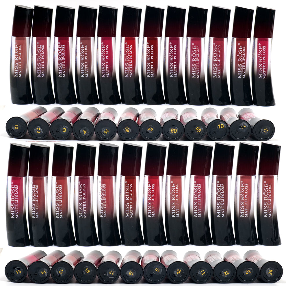 High pigmented Miss Rose Lip Gloss Fashion that dries to a flat matte finish, ideal alone or over other lip color, intense color in a flat finish for all day wear.