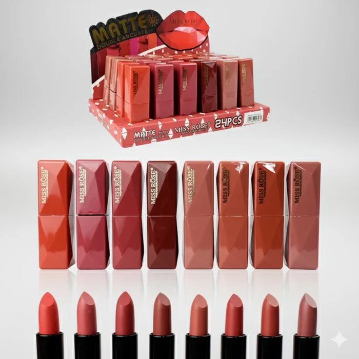 Indulge in the ultimate lip luxury with Miss Rose Creamy Matte Lipstick, available in 24 vibrant shades. Each lipstick delivers a creamy texture that glides on effortlessly, providing a matte finish that lasts all day. Whether you wear it alone for a classic look or layer shades for a custom blend, these highly pigmented lip creams offer endless possibilities.